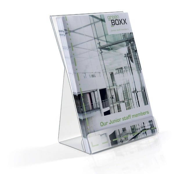 - Stojak przeznaczony jest do lokowania ulotek reklamowych czy prospektoacute;w z możliwością postawienia go na stole