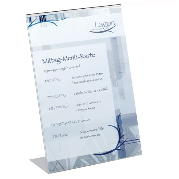 - Stojak przeznaczony jest do prezentowania informacji z możliwością postawienia go na stole