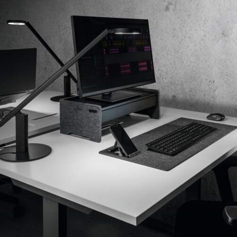 - Ergonomiczna podstawka do monitorów i laptopów z 3-stopniową regulacją wysokości wykonana w 60% z filcu PET pochodzącego z recyklingu