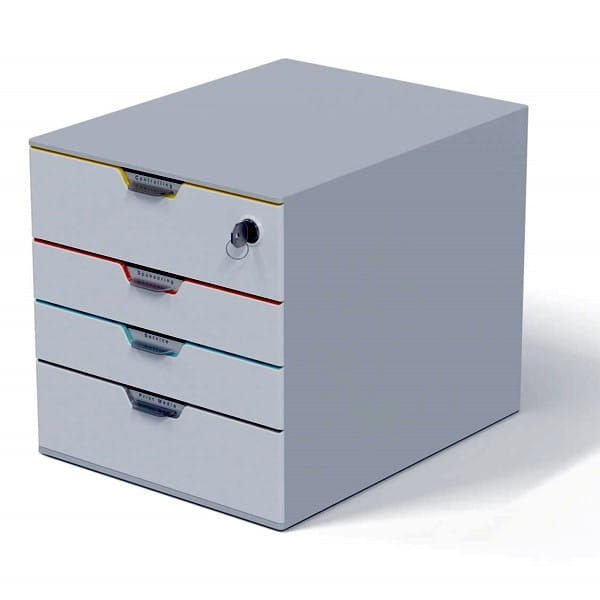 - Pojemnik z 4 kolorowymi szufladami umożliwiający segregację i łatwą orientację w dokumentach
