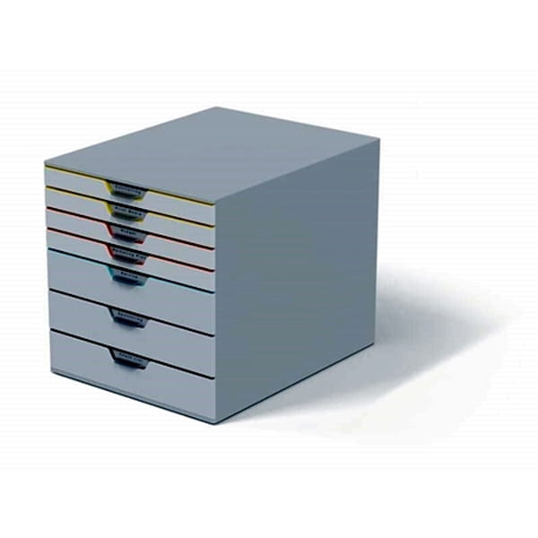 Pojemnik z 7 kolorowymi szufladami VARICOLOR 280x292x356mm DURABLE jasny szary front szuflad /762727/