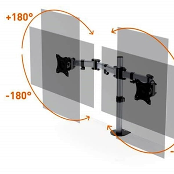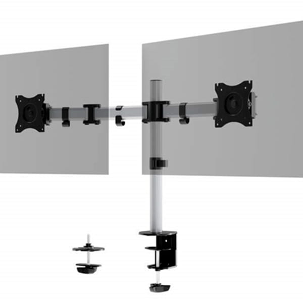 - Uchwyt na 2 monitory; możliwość montażu za pomocą zacisku stołowego lub w otworze blat