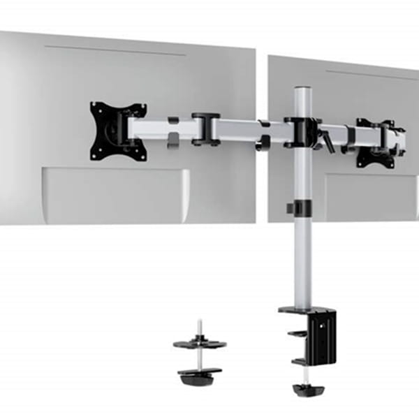 Uchwyt na 2 monitory LCD 21-27cali zacisk biurkowy srebrny /509523/