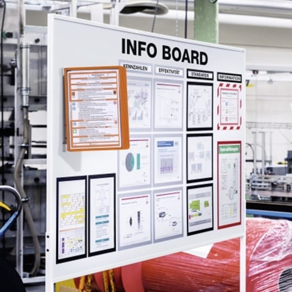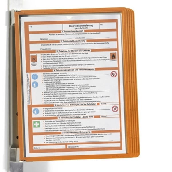 - Magnetyczny uchwyt ścienny z 5 pomarańczowych panelami w formacie A4 (Art. 5606).